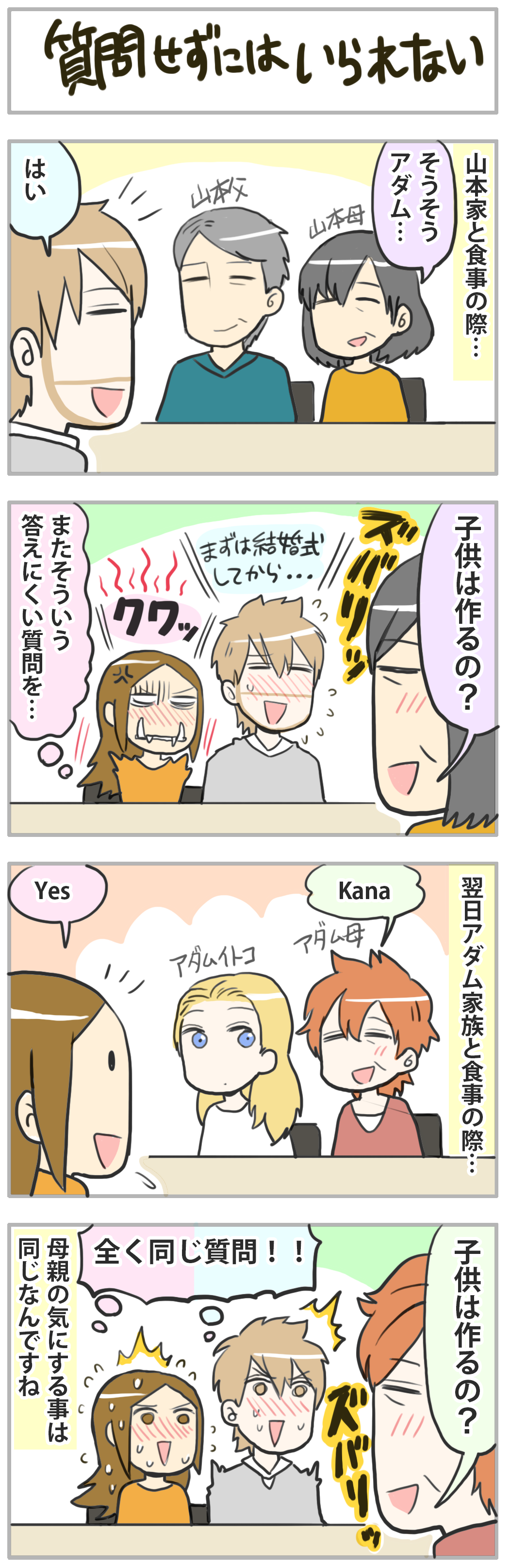 …と脱線しましたが、全く同じ質問を私達の母親がしてきたのにはアダムと笑っちゃいました。