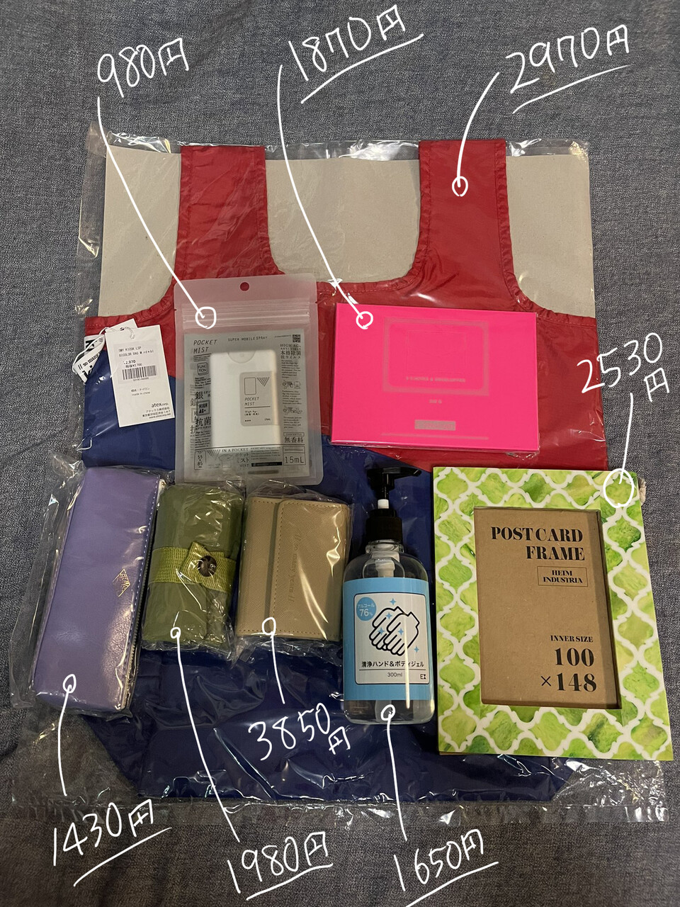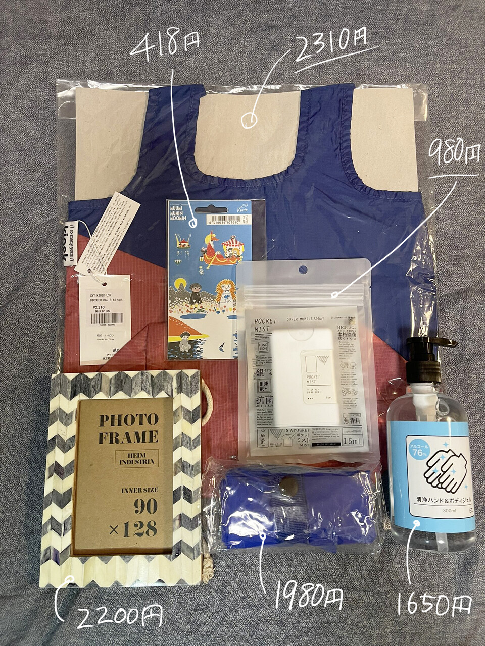 全く同じアルコール2個とエコバック2個(色違い)