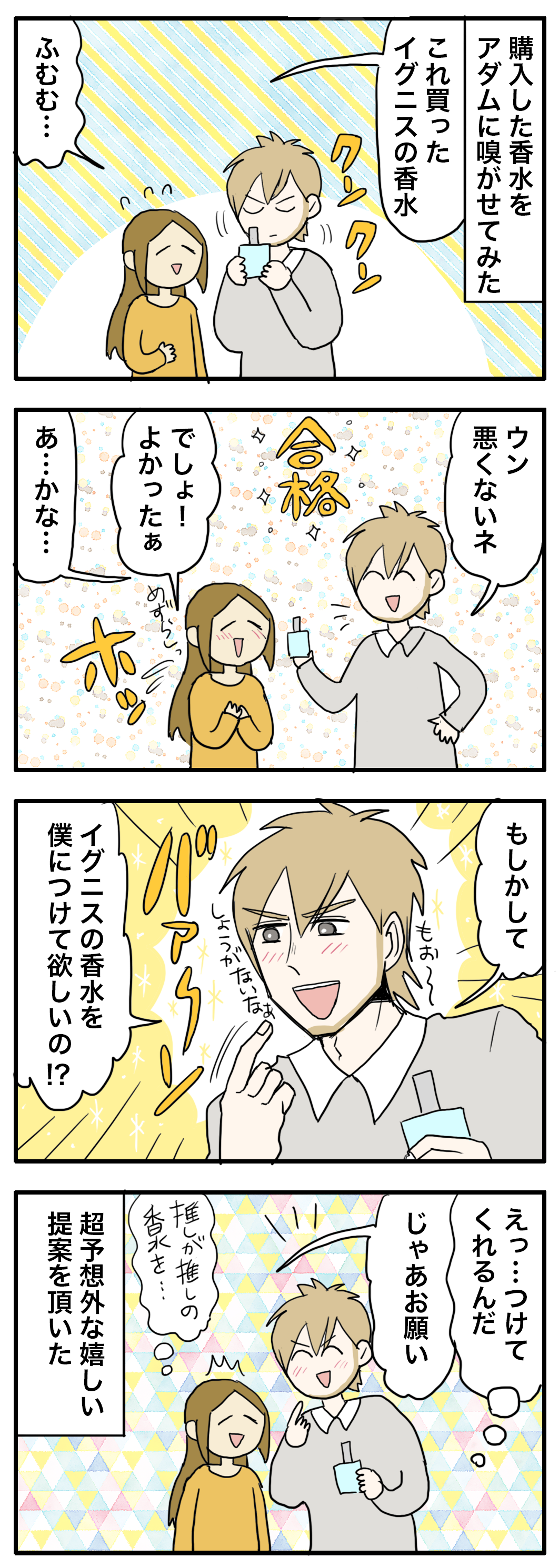 前回イグニスの香水を買った記事書きましたが、その香水をアダムにも嗅いでもらいました👃