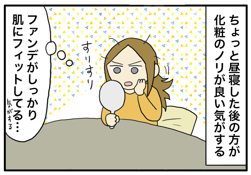 ちょっと昼寝すると化粧がいい感じにぴっちり肌に染み込む気がするんですよね😂