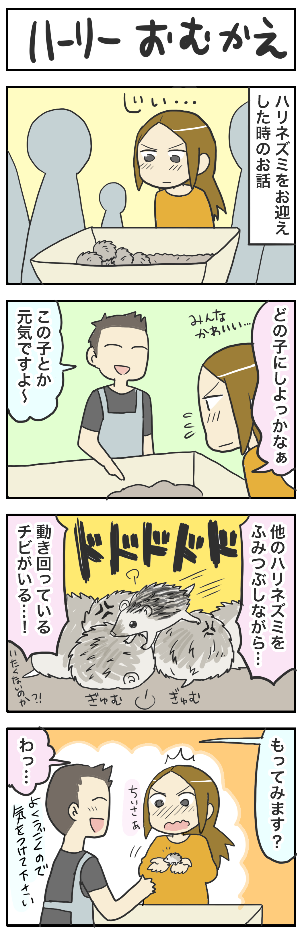 ハーリーはたのハリネズミよりも体がとっても小さいのにすごく元気で、手の上でも動き回るわうんちするわでファーストインパクトが強烈でとっても気に入ってしまいそのままお家へ連れて帰りました笑