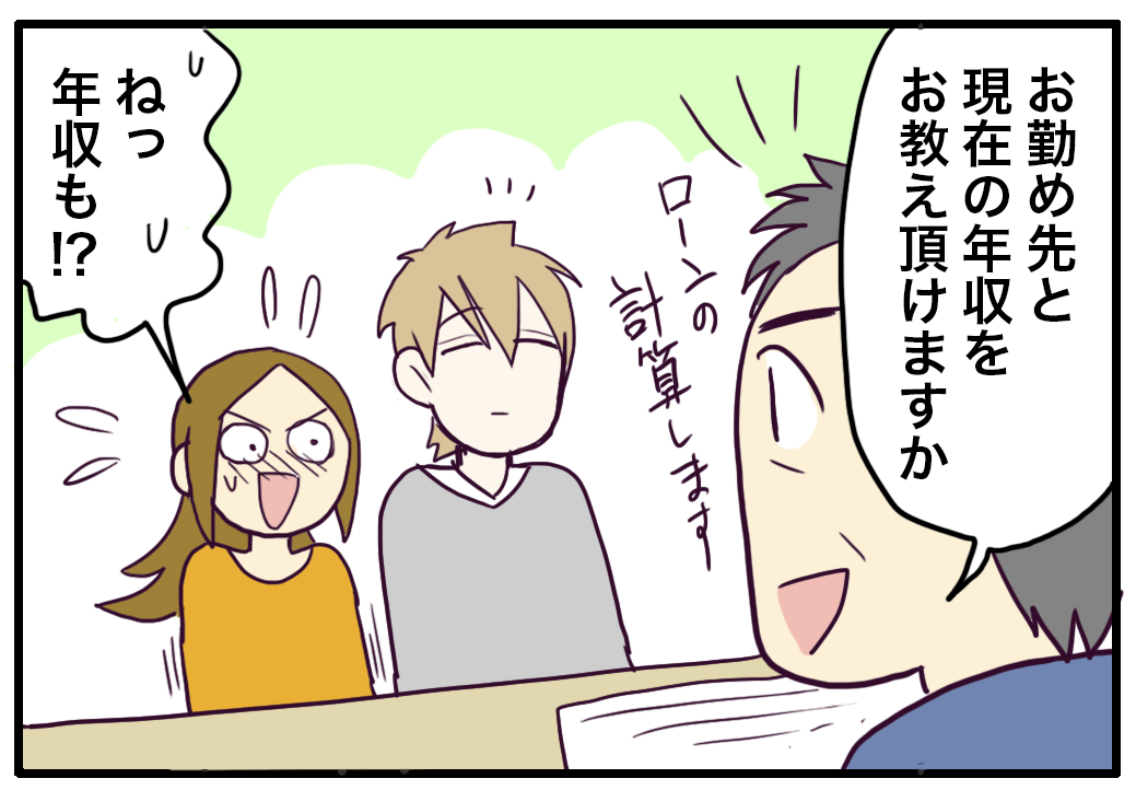 勤め先がどこなのか、また年収がどれくらいかによって借りられるローンを大体計算し…土地の値段と家の値段の目安を出してくれます。ほかにローンがないかも聞かれました。