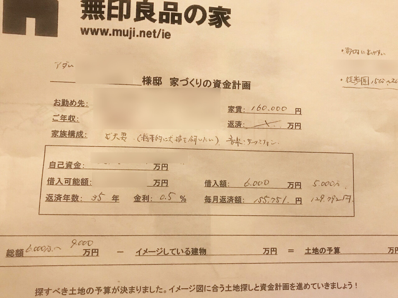 この紙は無印良品の家スタッフにメールで送り、2回目の打ち合わせに生かされるとのこと…ワクワク!